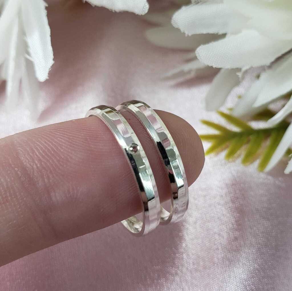 Design: Aliança masculina lisa chanfrada 2,5mm – feminina lisa chanfrada 2,5mm com pedra.