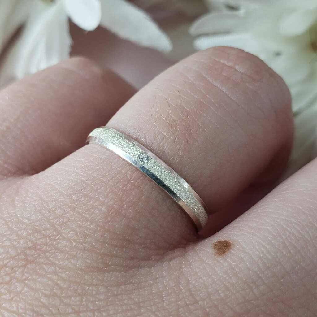 Aliança prata 950 diamantada 2,5mm.