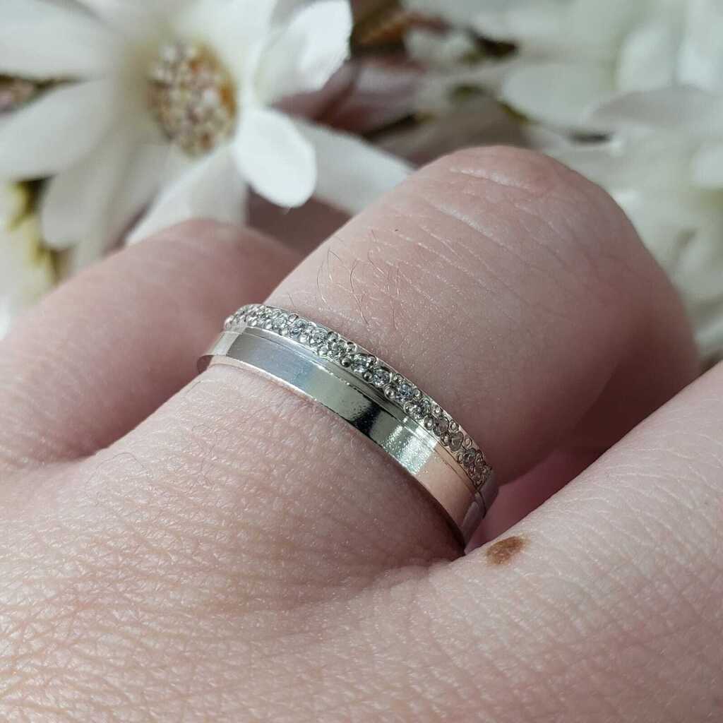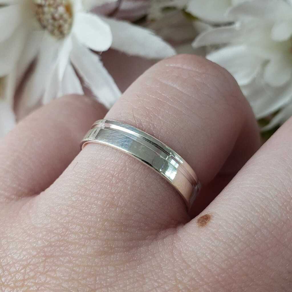 Design: Aliança masculina reta 4mm polida com canal lateral - feminina reta 4mm polida com canal meio cravejado.